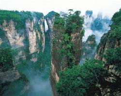 - 張家界景區(qū)云霧繚繞,宛如仙境引客